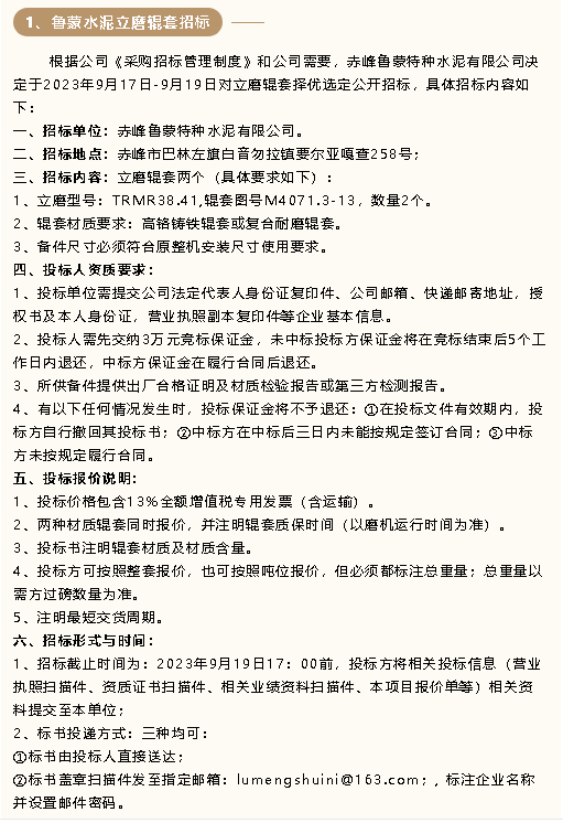 【招標(biāo)公告】魯蒙水泥