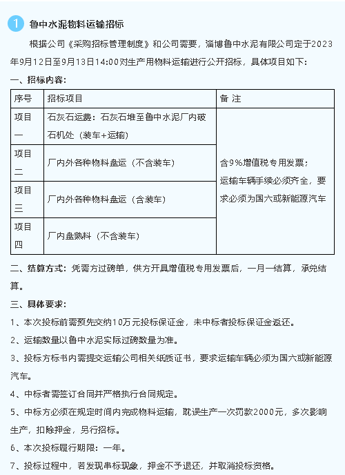 【招標(biāo)公告】魯中水泥、重山光電