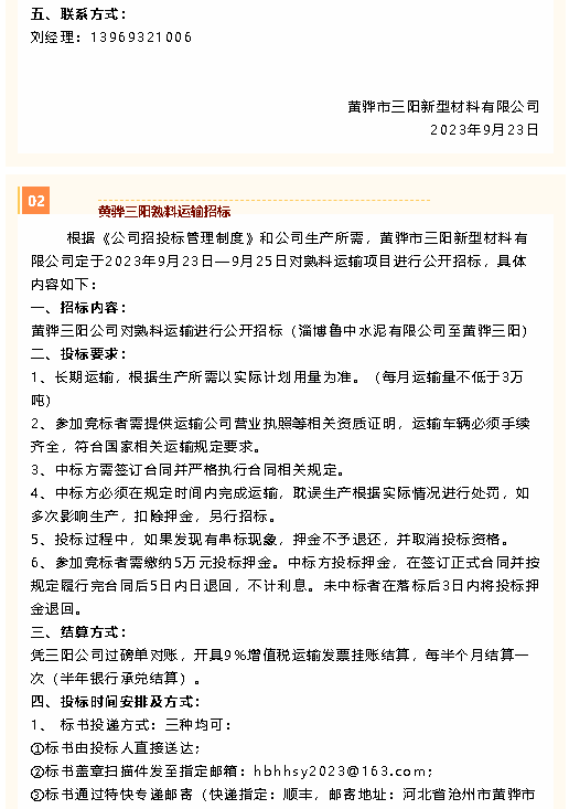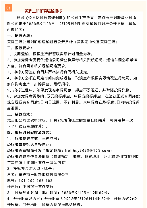 【招標(biāo)公告】黃驊三陽礦粉運(yùn)輸、熟料運(yùn)輸、石子招標(biāo)