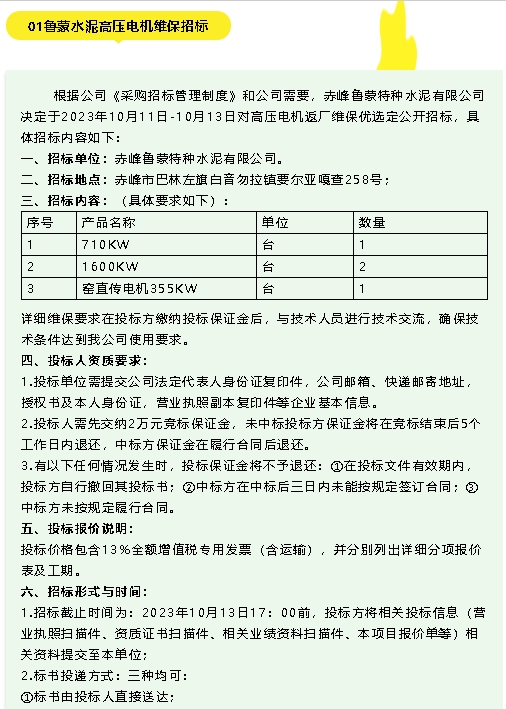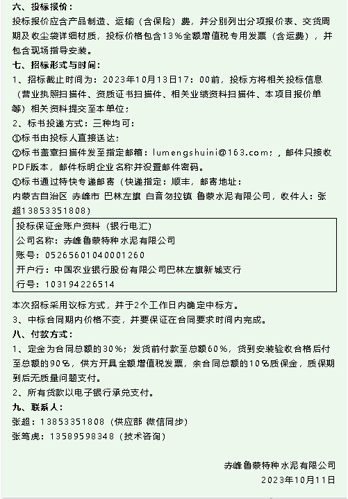 【招標(biāo)公告】魯蒙水泥