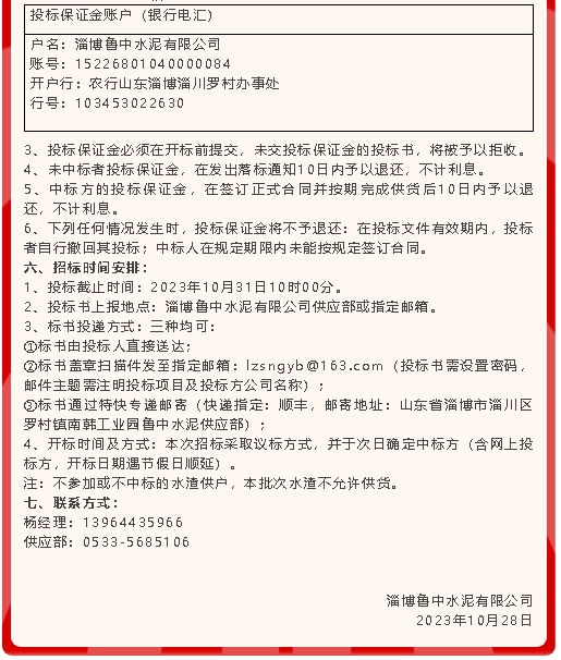 【招標(biāo)公告】魯中水泥