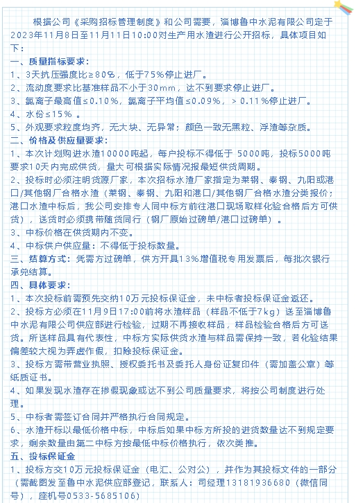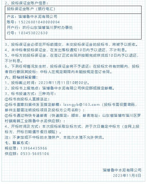 【招標(biāo)公告】魯中水泥