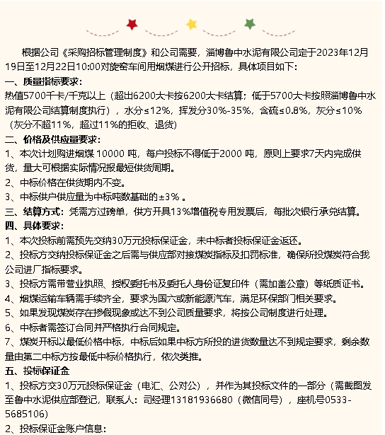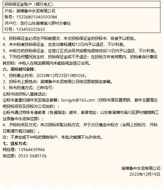 【招標(biāo)公告】魯中水泥