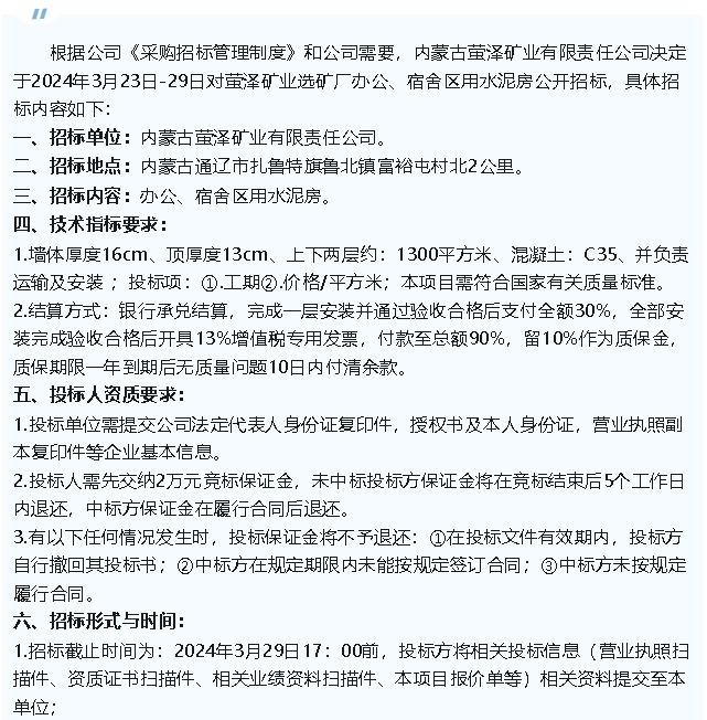 【招標公告】螢澤礦業(yè)