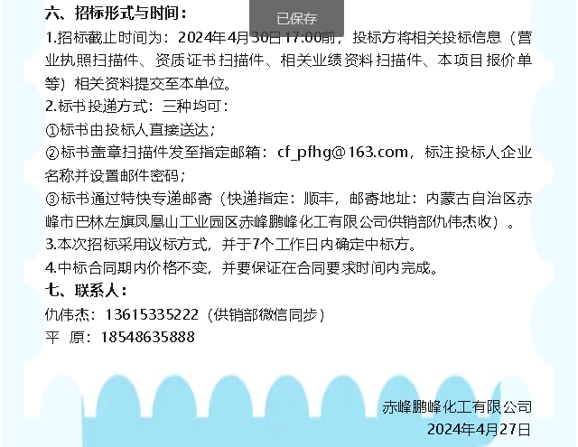 【招標(biāo)公告】鵬峰化工