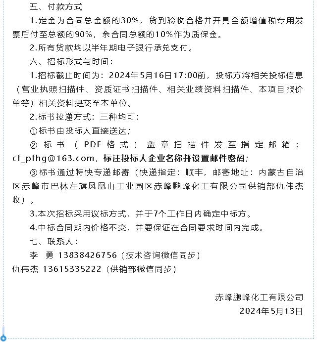 【招標(biāo)公告】鵬峰化工