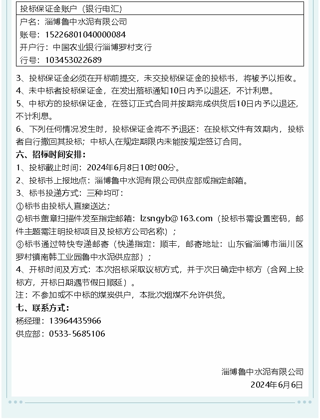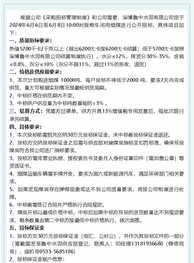 【招標公告】魯中水泥