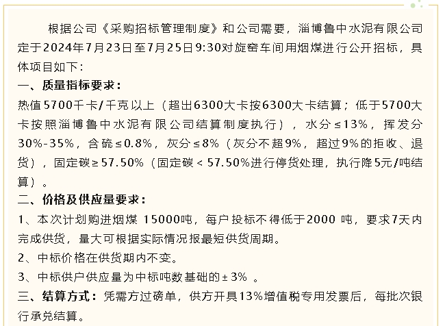 【招標(biāo)公告】魯中水泥