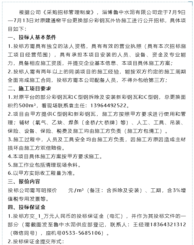 【招標(biāo)公告】魯中水泥
