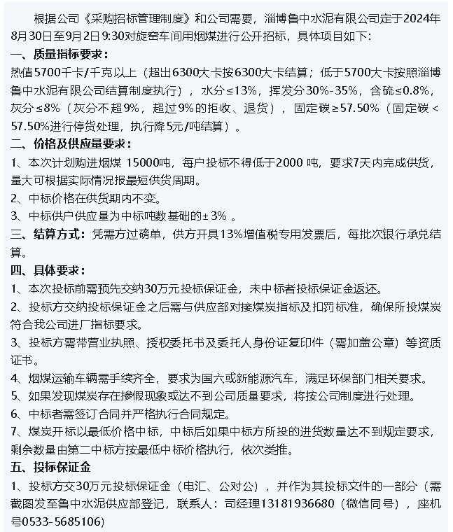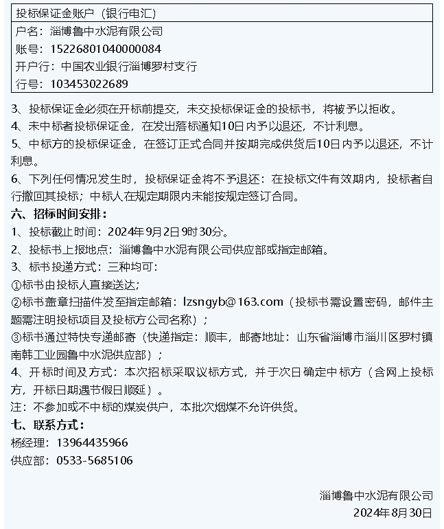 【招標公告】魯中水泥