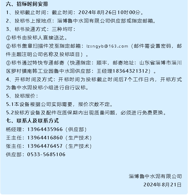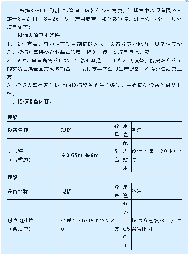 【招標公告】魯中水泥
