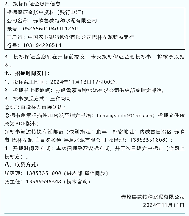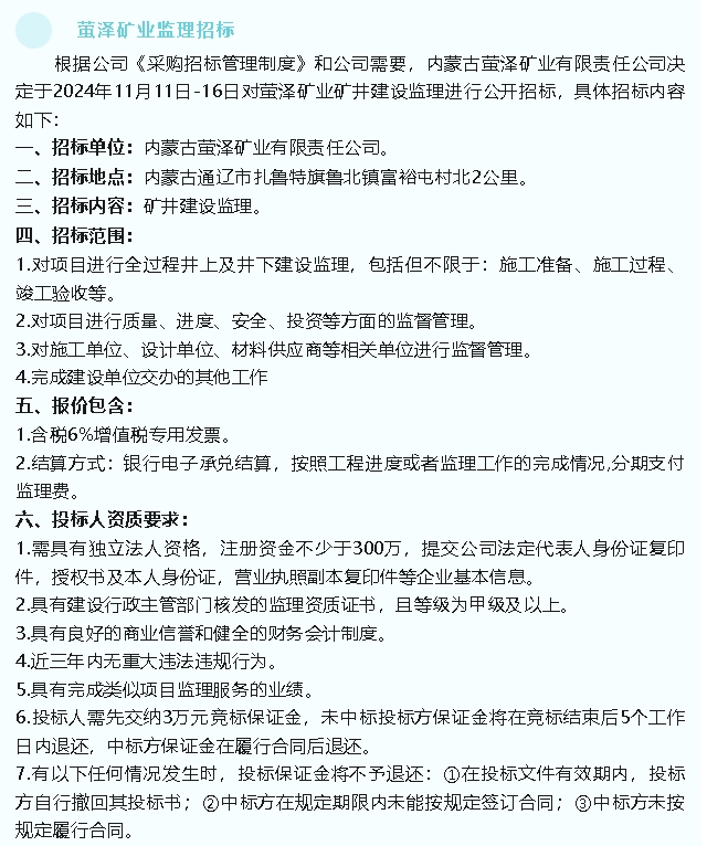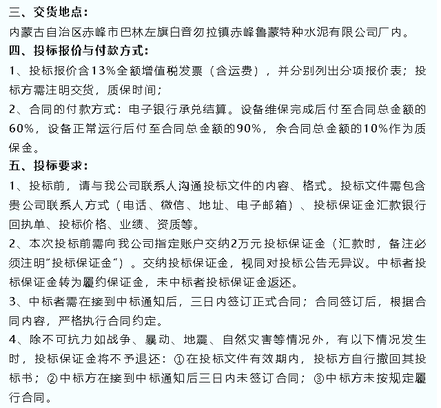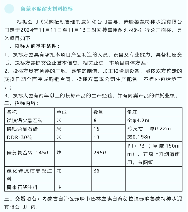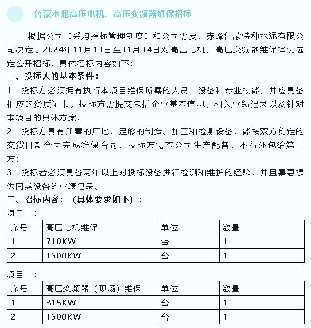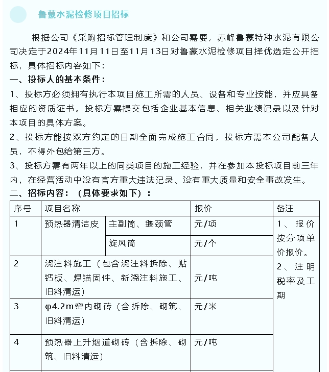 【招標(biāo)公告】魯蒙水泥、螢澤礦業(yè)