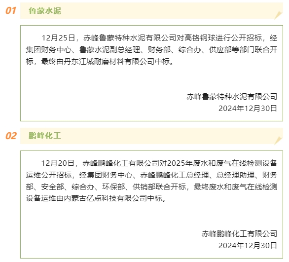 【中標(biāo)公告】魯蒙水泥、鵬峰化工