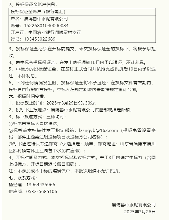 【招標公告】重山集團、鵬峰化工、魯中水泥