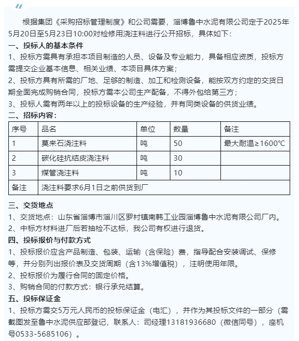 【招標公告】魯中水泥