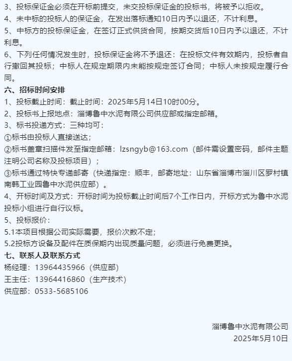 【招標(biāo)公告】魯中水泥