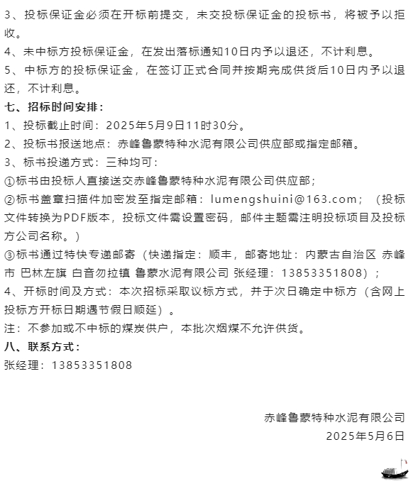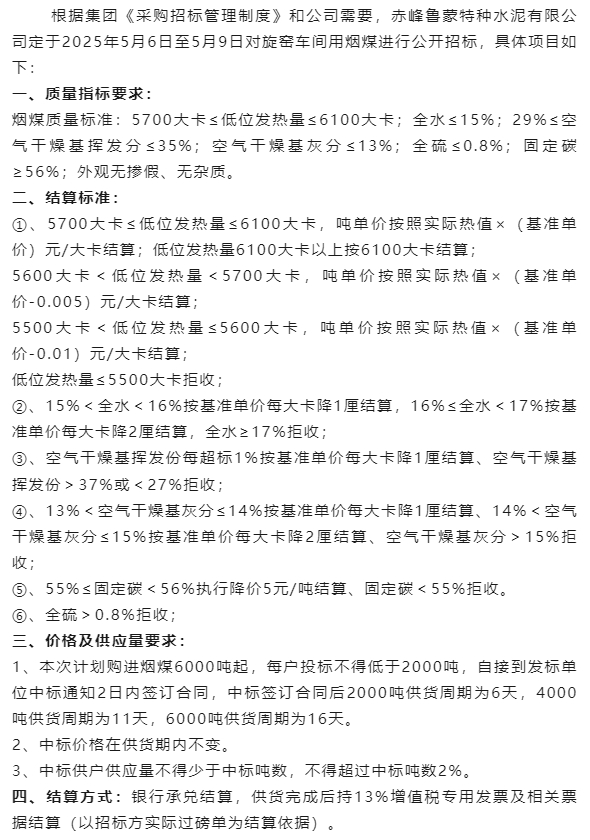 【招標(biāo)公告】魯蒙水泥
