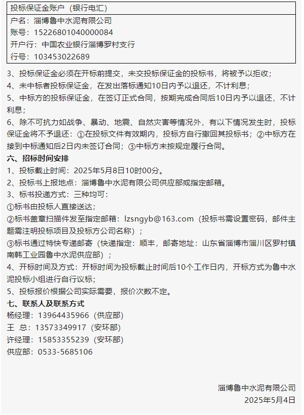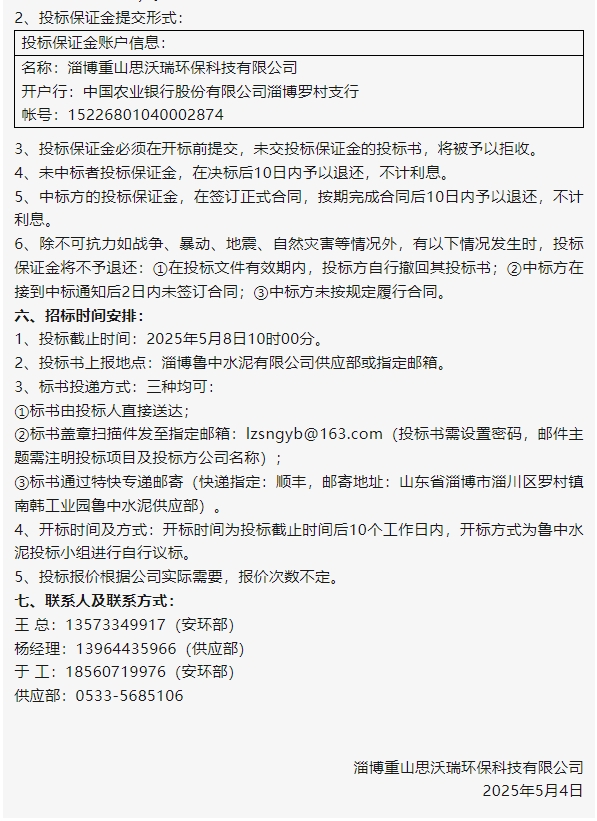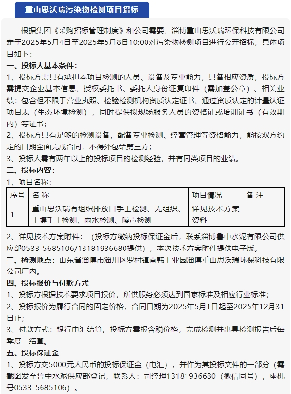 【招標公告】魯中水泥、重山思沃瑞