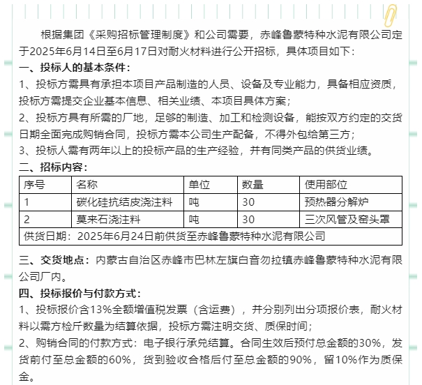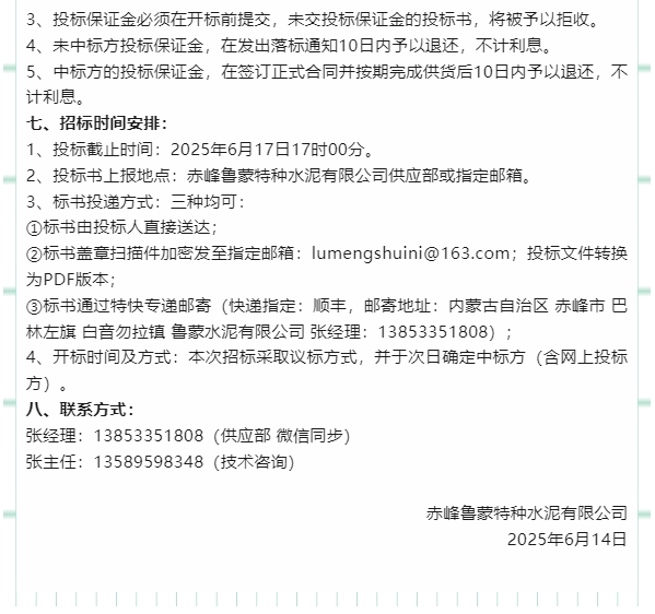 【招標(biāo)公告】魯蒙水泥