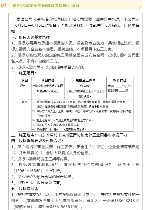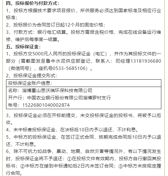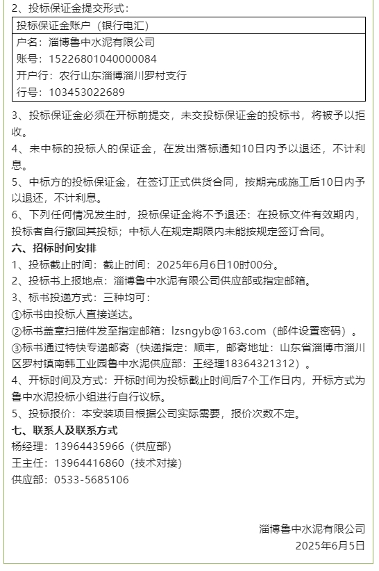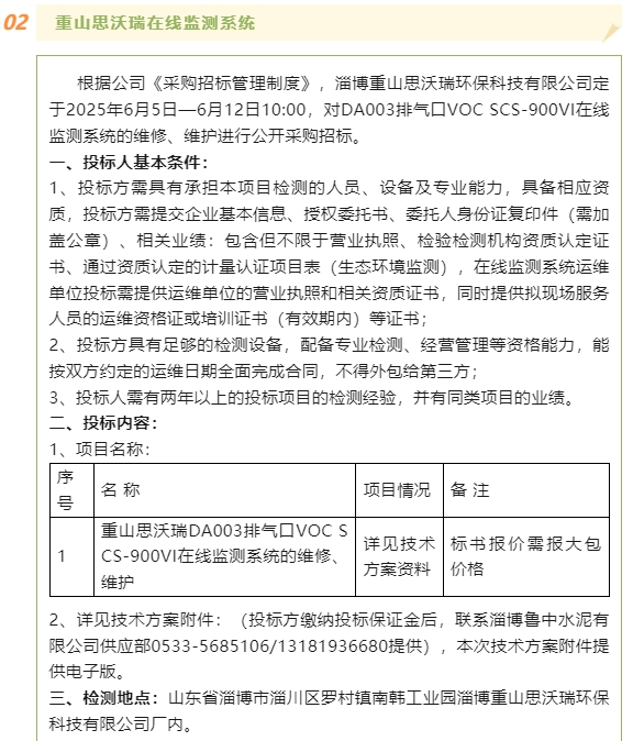 【招標(biāo)公告】魯中水泥、重山思沃瑞