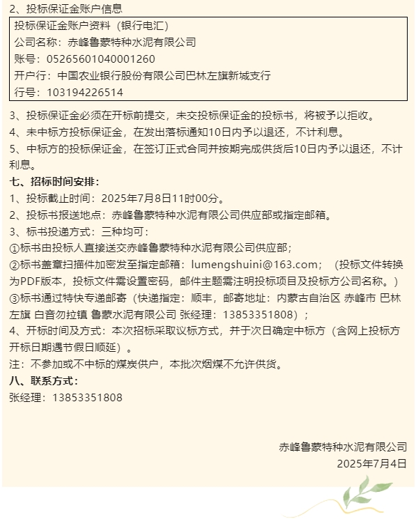 【招標(biāo)公告】魯蒙水泥