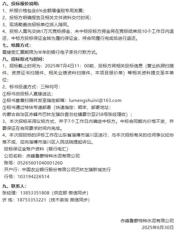 【招標(biāo)公告】魯蒙水泥、鵬峰化工