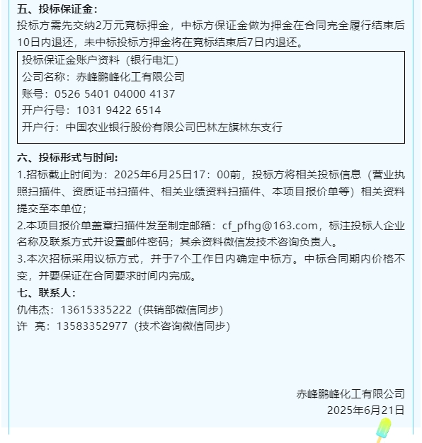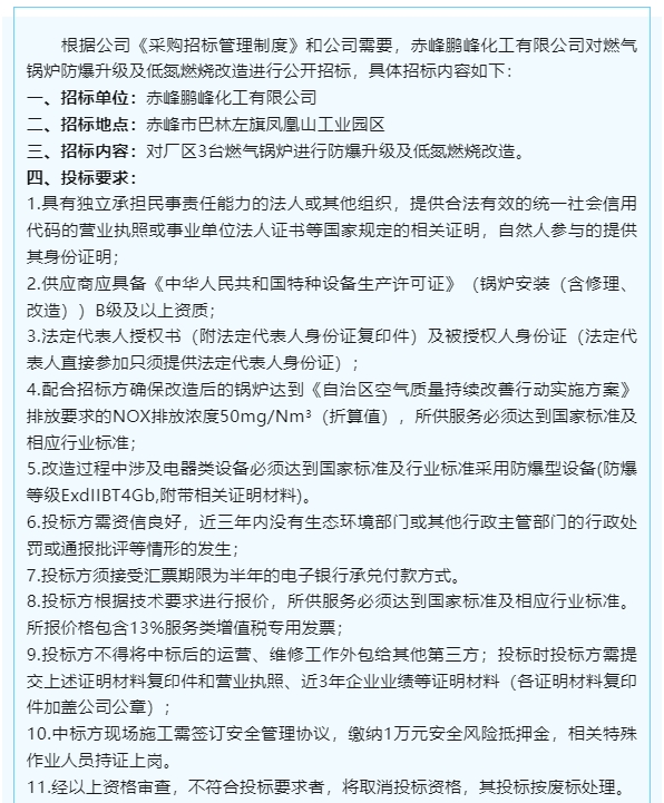 【招標(biāo)公告】鵬峰化工