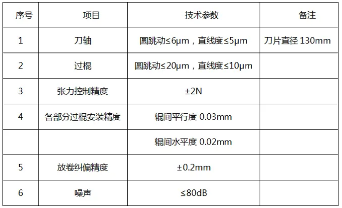 6.2.1 分切機工藝參數(shù)