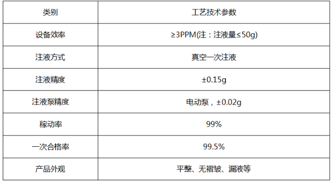 半自動注液機用于鋰氟化碳電池的真空注液,主要包含掃碼稱重、自動注液功能,不帶真空靜置和真空封裝功能。本設備以工控機為核心采集生產(chǎn)運行數(shù)據(jù)并上傳至MES系統(tǒng)(預留MES系統(tǒng)對接端口), 將電池注液、靜置時間等信息與鋁塑膜掃碼一一對應,并將對應信息存儲至工業(yè)PC或上傳至MES系統(tǒng)。