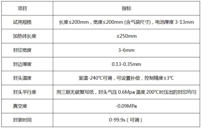 真空預封機用于注液靜置后的軟包鋰氟化碳電池真空抽氣、熱壓封口,其工作流程是電池放入后,抽-90KPa的負壓,使電芯內(nèi)的空氣排除;然后對軟包電池進行封裝的功能。