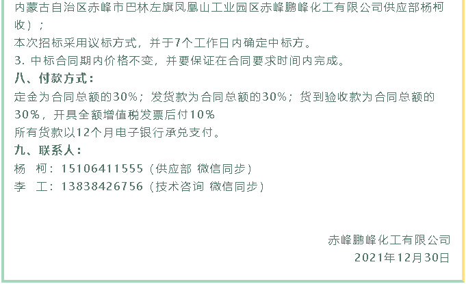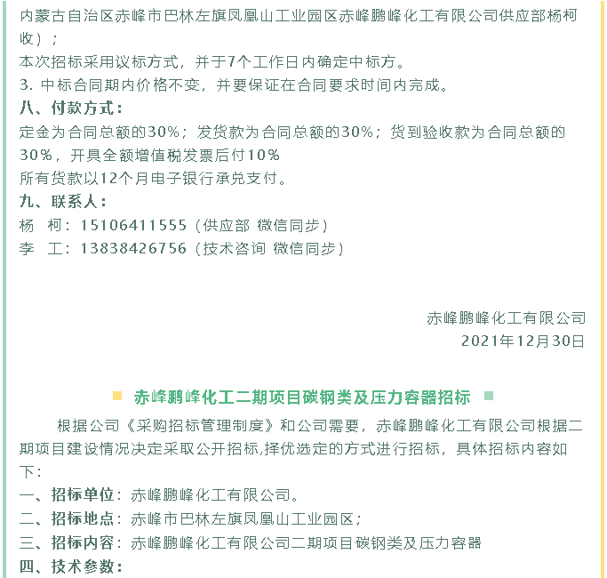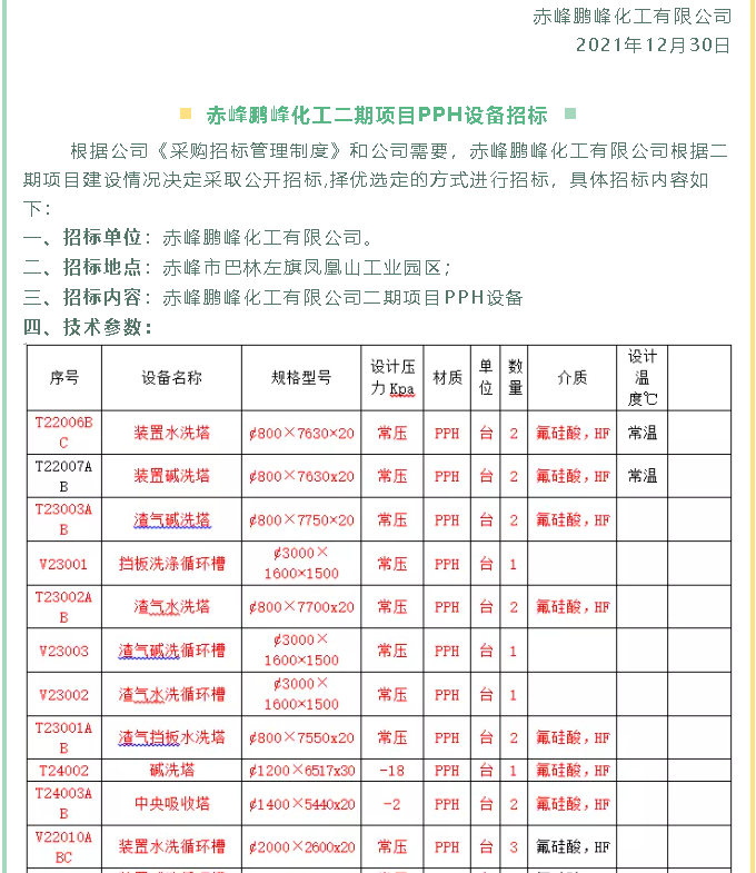 【招標公告】鵬峰化工