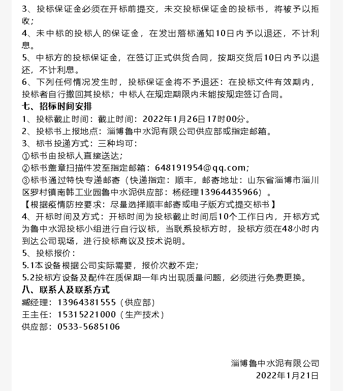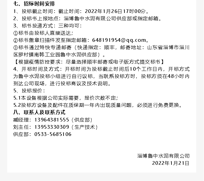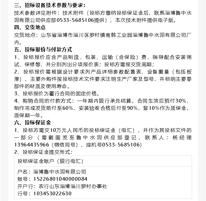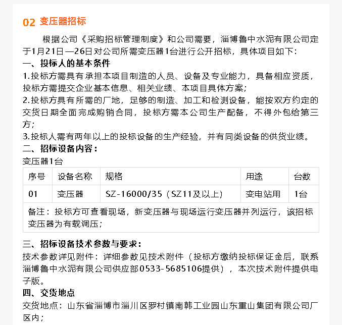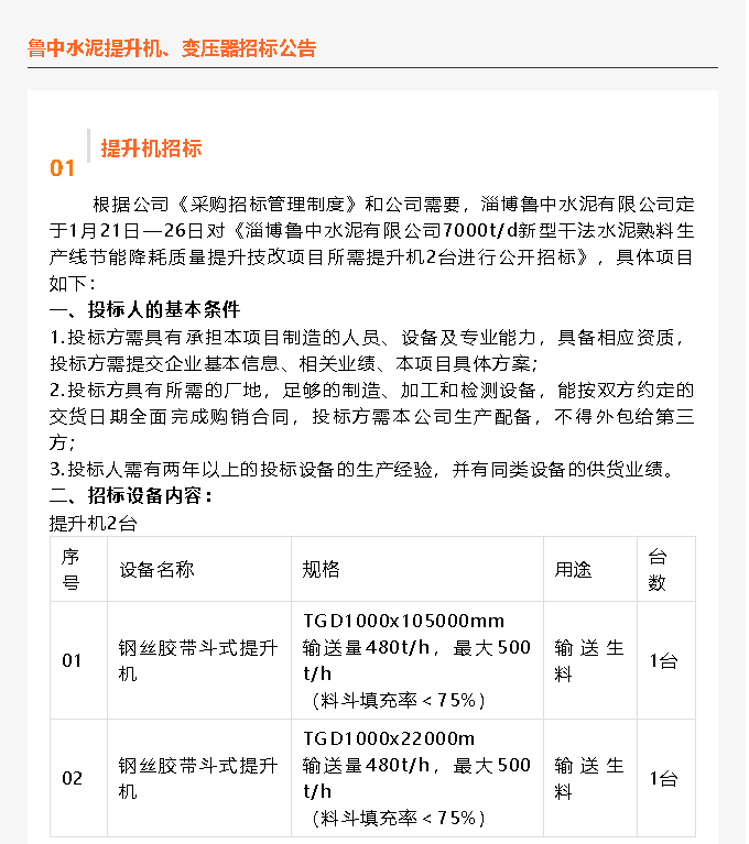 【招標(biāo)公告】魯中水泥提升機、變壓器招標(biāo)