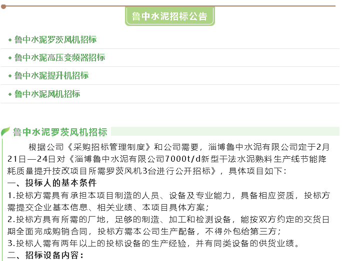 【招標(biāo)公告】魯中水泥羅茨風(fēng)機、高壓變頻器、提升機、風(fēng)機招標(biāo)