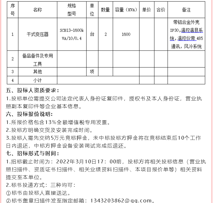 【招標(biāo)公告】鵬峰化工稱重儀表、柴油發(fā)電機、干式變壓器招標(biāo)