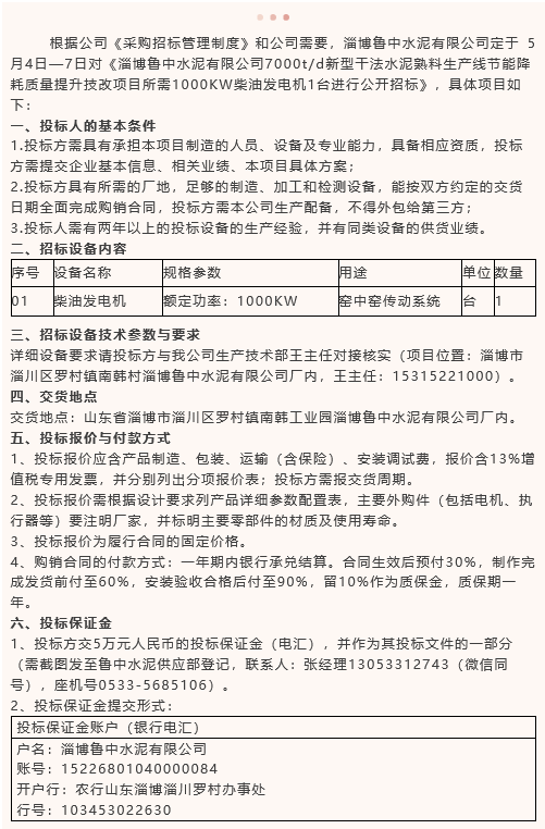 【招標(biāo)公告】魯中水泥
