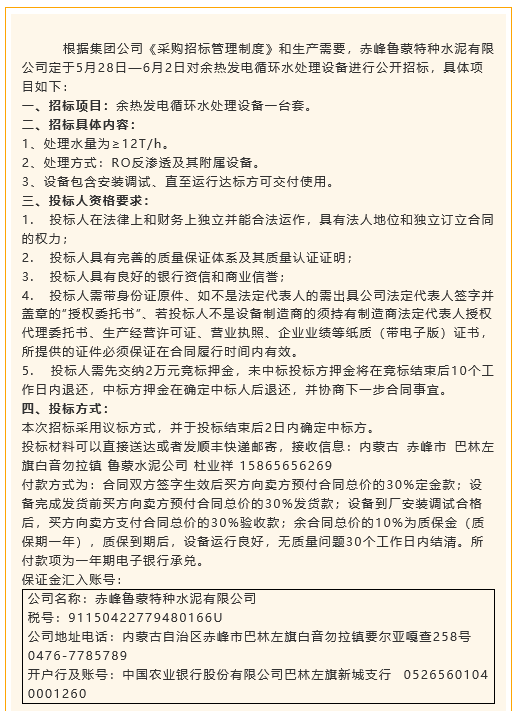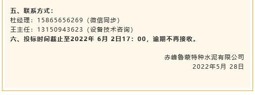 【招標公告】魯蒙水泥