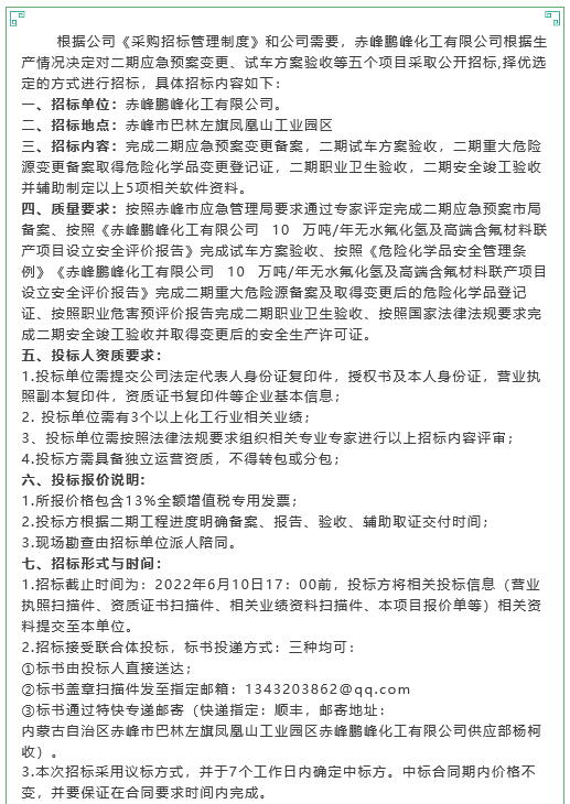 【招標(biāo)公告】鵬峰化工