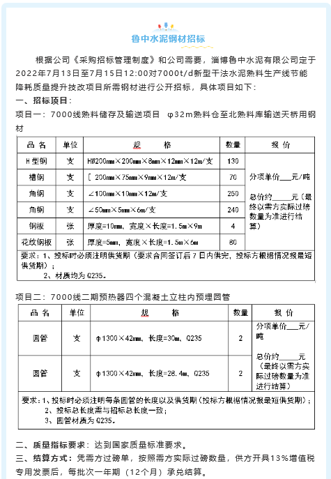 【招標(biāo)公告】魯中水泥