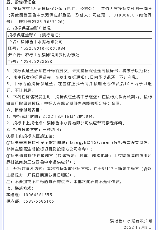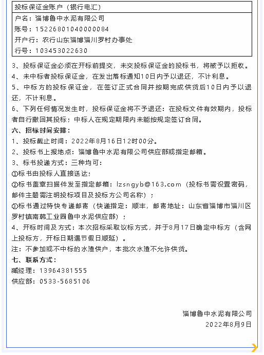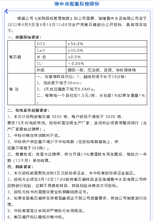 【招標(biāo)公告】魯中水泥