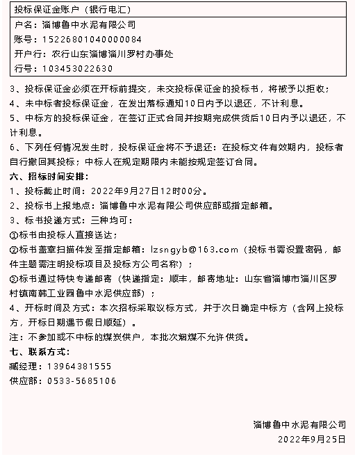 【招標(biāo)公告】魯中水泥