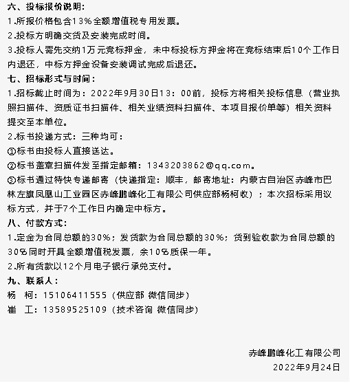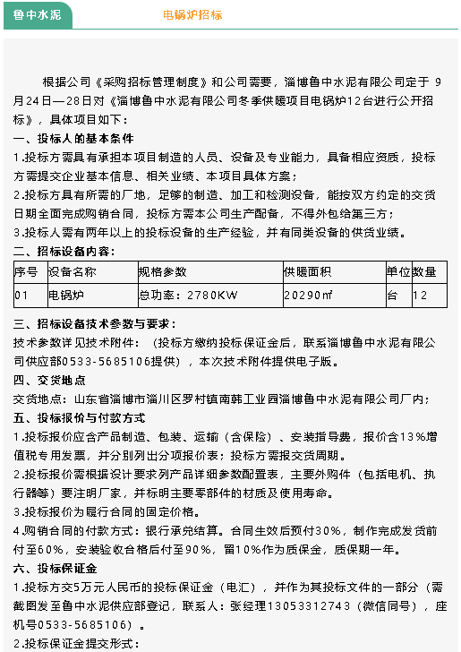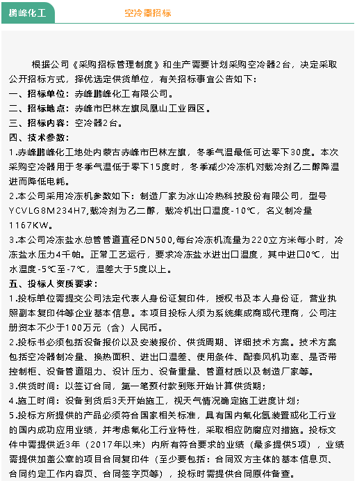 【招標(biāo)公告】魯中水泥電鍋爐、鵬峰化工空冷器招標(biāo)