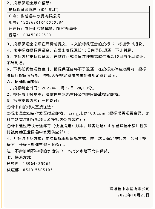【招標(biāo)公告】魯中水泥