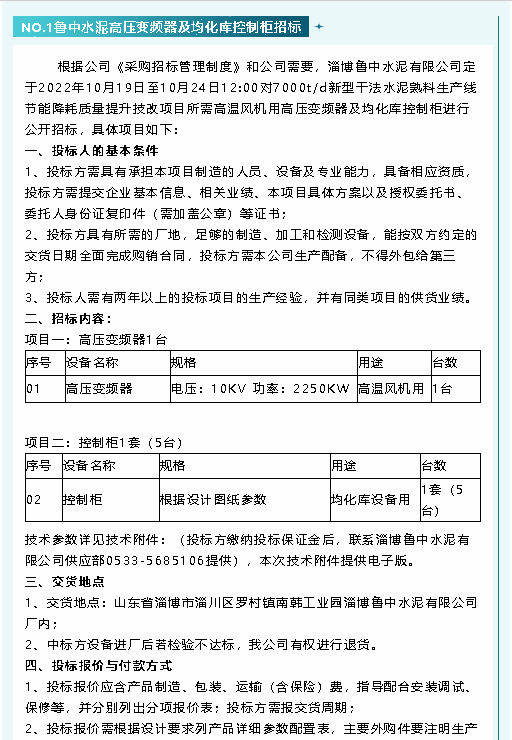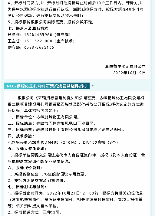 【招標(biāo)公告】魯中水泥、鵬峰化工、螢澤礦業(yè)