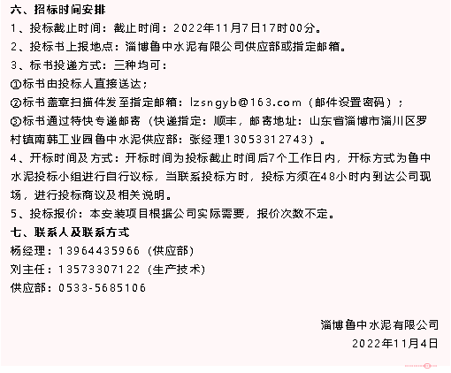 【招標(biāo)公告】魯中水泥