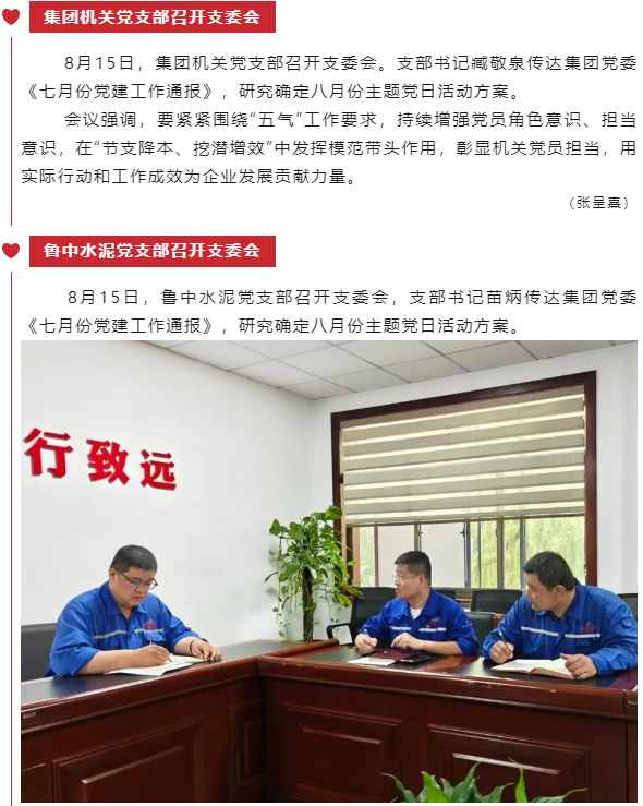 【黨建】集團機關黨支部、魯中水泥黨支部、重山光電黨支部分別召開支委會
