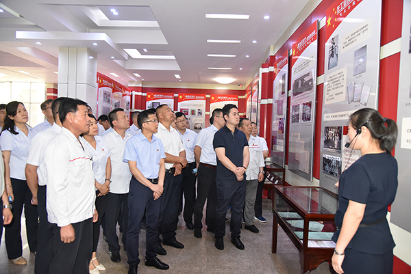 隨后,全體黨員干部代表集體乘車(chē)赴博山焦裕祿紀(jì)念館現(xiàn)場(chǎng)參觀,接受革命傳統(tǒng)教育,學(xué)習(xí)弘揚(yáng)焦裕祿精神,進(jìn)一步增強(qiáng)黨性修養(yǎng)和創(chuàng)業(yè)奮斗意識(shí)。在紀(jì)念館,黨員干部代表認(rèn)真聽(tīng)取講解,通過(guò)一張張圖片、一件件文物、一段段故事學(xué)習(xí)回顧焦裕祿同志光輝偉大的一生和感人致深的革命事跡,切身感受了焦裕祿同志親民愛(ài)民、艱苦奮斗、科學(xué)求實(shí)、迎難而上、無(wú)私奉獻(xiàn)的崇高精神。參觀結(jié)束后,全體黨員干部代表向焦裕祿同志塑像敬獻(xiàn)花籃并鞠躬致敬。全體黨員代表重溫入黨誓詞。參觀學(xué)習(xí)活動(dòng)給黨員干部上了一堂生動(dòng)難忘的黨課。本次主題教育活動(dòng),集團(tuán)公司還為全體黨員發(fā)放了《苦難輝煌》學(xué)習(xí)書(shū)籍,要求每名黨員牢記黨的奮斗歷史和革命傳統(tǒng),堅(jiān)定不移的跟黨走,以高度的責(zé)任感、使命感投入到本職工作中去,為黨的事業(yè)發(fā)展做出新的貢獻(xiàn)。