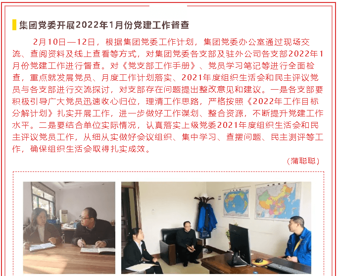 集團(tuán)黨委開(kāi)展2022年1月份黨建工作督查