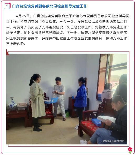 【黨建】白音勿拉鎮(zhèn)黨委到魯蒙公司檢查指導(dǎo)黨建工作、魯蒙水泥黨支部開展主題黨日活動(dòng)
