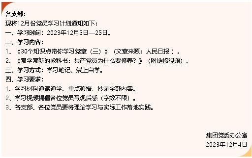【通知】集團黨委12月份學(xué)習(xí)通知